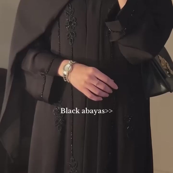 Handmade details bring a unique charm to this abaya, making every moment graceful."*Beautiful Paty wear handwork abaya with black hijab Front open with buttons
